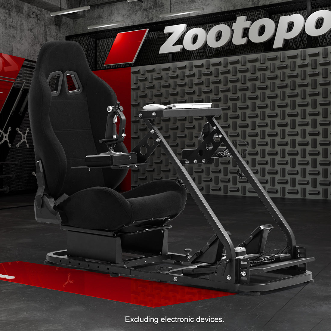 Zootopo Flight Simulator Cockpit with Black Seat Fit for Fanatec/Moza/Logitech X52 PRO/THRUSTMASTER A10,T.16000M FCS Adjustable Versatile,No Joystick,Handbrake,Shifter,Pedals,Steering Wheel,TV Mount