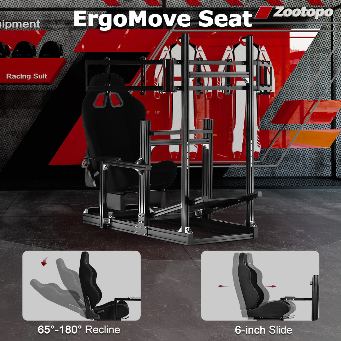 Zootopo 8040 Aluminum Profile Racing Sim Cockpit with Triple Monitor Stand Fit Logitech G923 G920, Adjuatable Gaming Simulator Cockpit with Black Seat Not Include Steering Wheel,Pedals,Handbrake