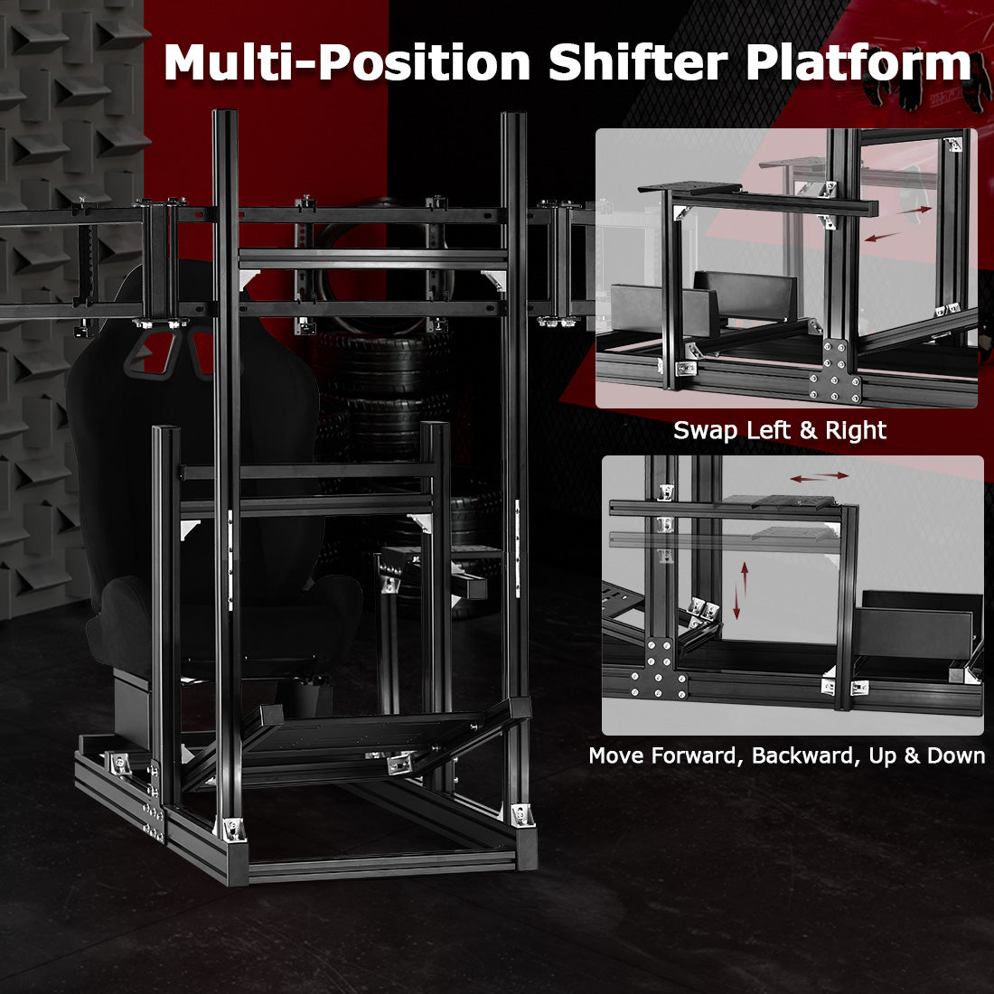 【Unlimited Adjustability】The simulator cockpit mount supports comprehensive adjustment. The main frame, steering wheel, pedals and other accessories can all be freely adjusted to fully meet the demands of professional racers